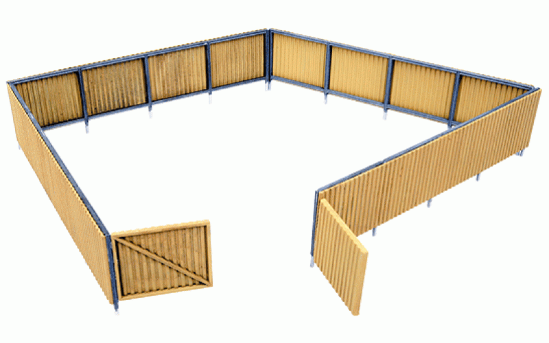 Fencing at a scrap yard serves many purposes - to block the view from the outside, to keep scrap piles from spilling over the property line, to prevent passers-by from injury and, primarily, to prevent theft. This type of fencing can also be used at other industrial sites. The kit includes 240 scale feet of fencing with three double gates.