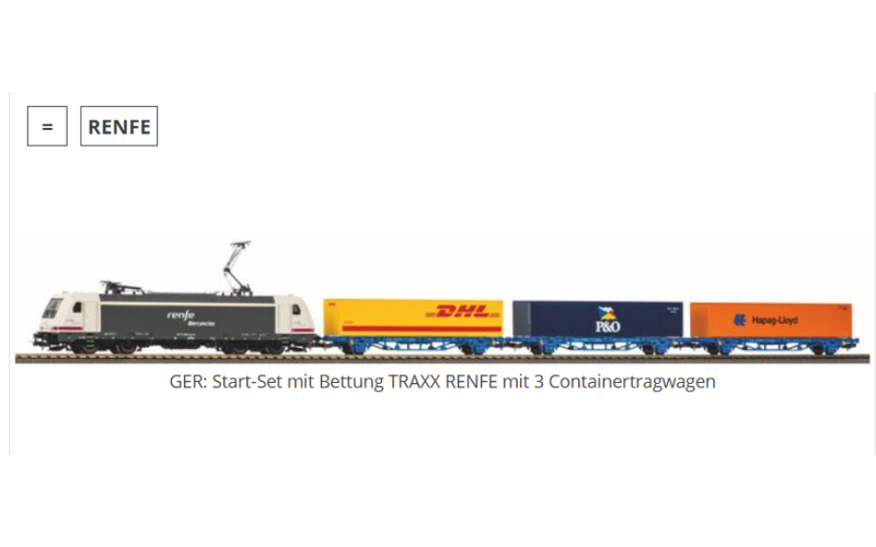 Starter set with roadbed TRAXX RENFE with 3 container wagons